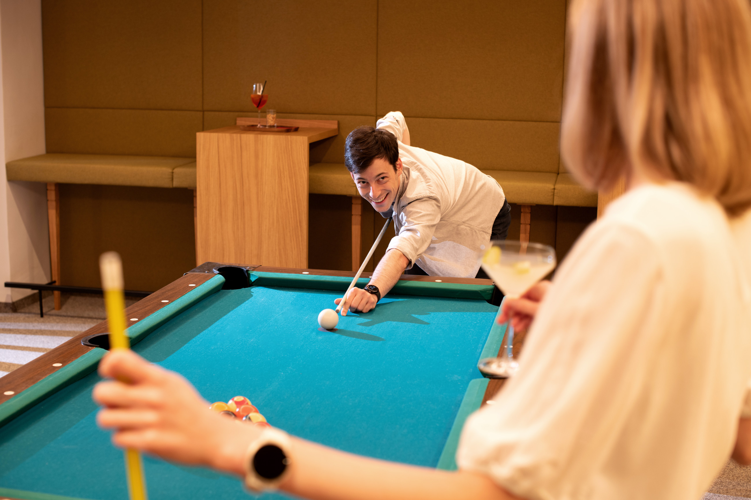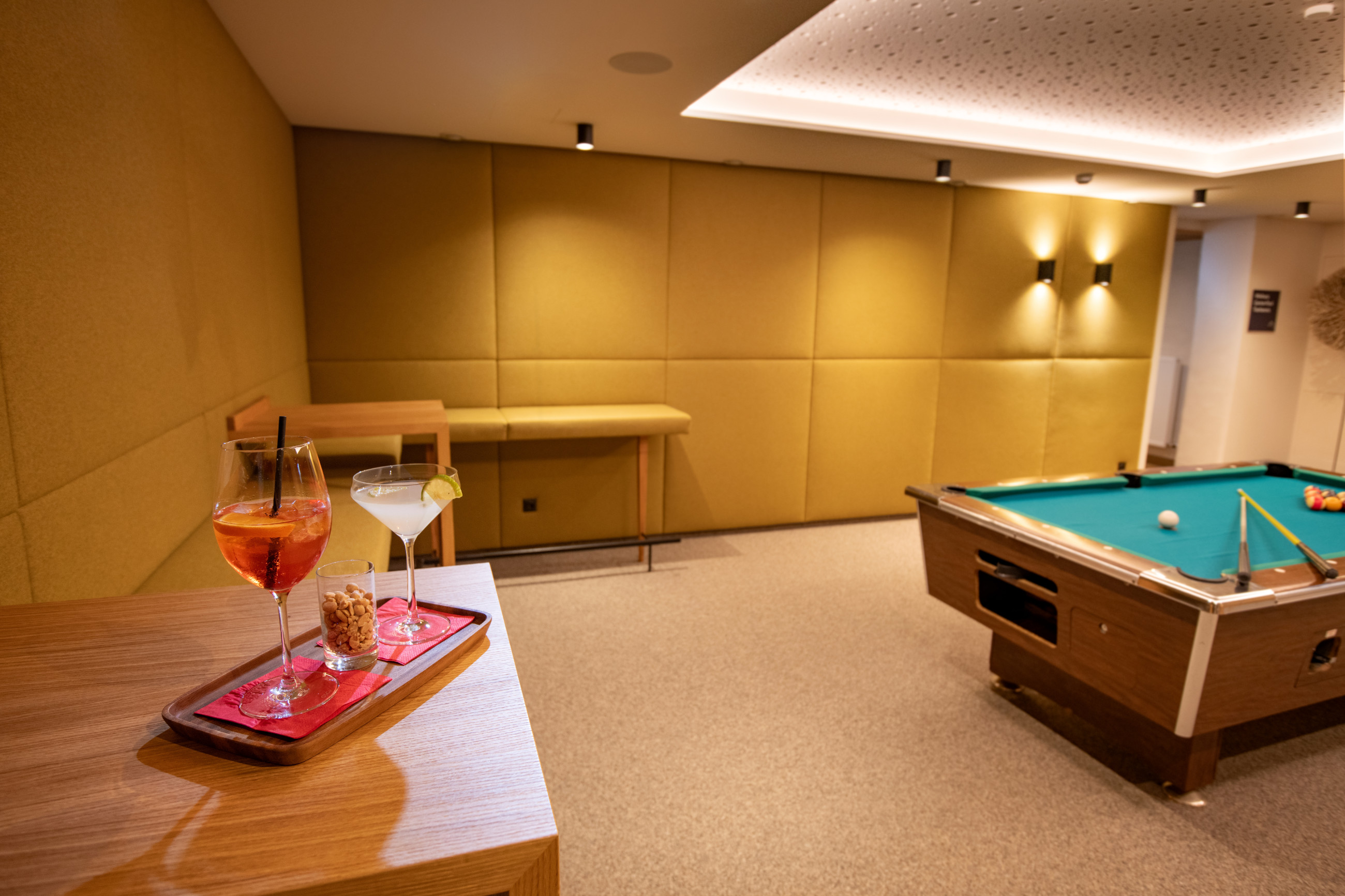 Unsere geschmackvoll eingerichtete Billard-Lounge ist auch dann beliebt, wenn die Sonne einmal eine Pause einlegt. Mit ihren gemütlichen Sitzgelegenheiten eignet sich diese Lounge perfekt für einen Drink und ist der perfekte Rückzugsort für gesellige Stunden.